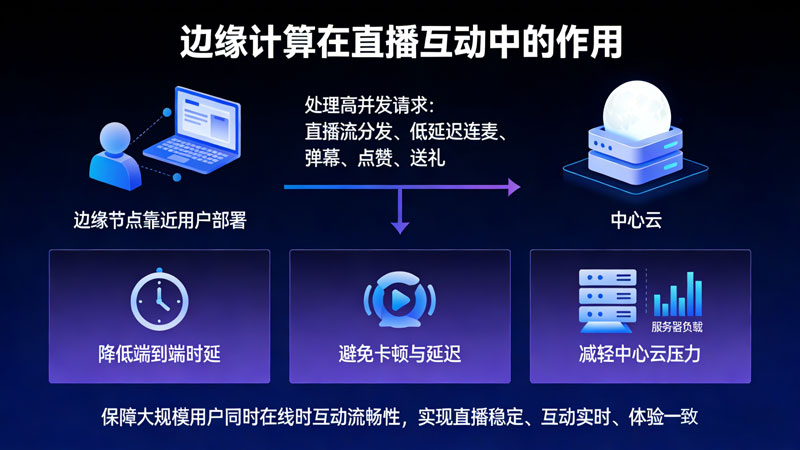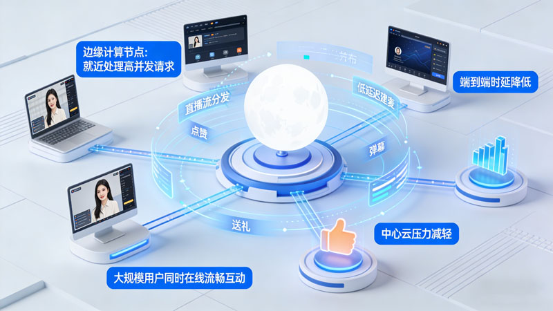 在直播互动场景中,边缘计算节点靠近用户部署,可就近处理直播流分发、低延迟连麦、弹幕、点赞、送礼等高并发请求,大幅降低端到端时延,避免卡顿与延迟。同时减轻中心云压力,保障大规模用户同时在线时的互动流畅性,实现直播稳定、互动实时、体验一致。