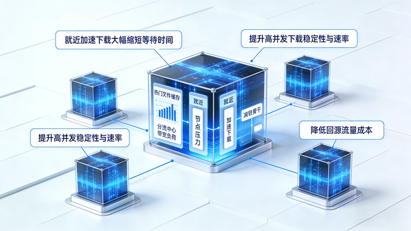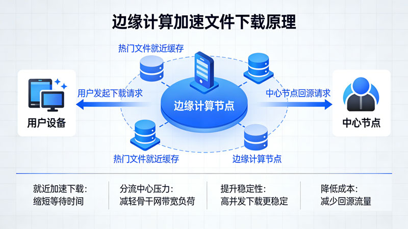 在文件下载场景中,边缘计算节点靠近用户部署,可将热门文件就近缓存,实现就近加速下载,大幅缩短等待时间。同时分流中心节点压力,减轻骨干网带宽负荷,提升高并发下载时的稳定性与速率,降低回源流量成本,为用户带来更快、更稳定的下载体验。